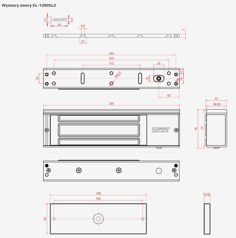 SCOT EL-1200SL2 ZWORA ELEKTROMAGNETYCZNA 540 KG Z SYGNALIZACJĄ