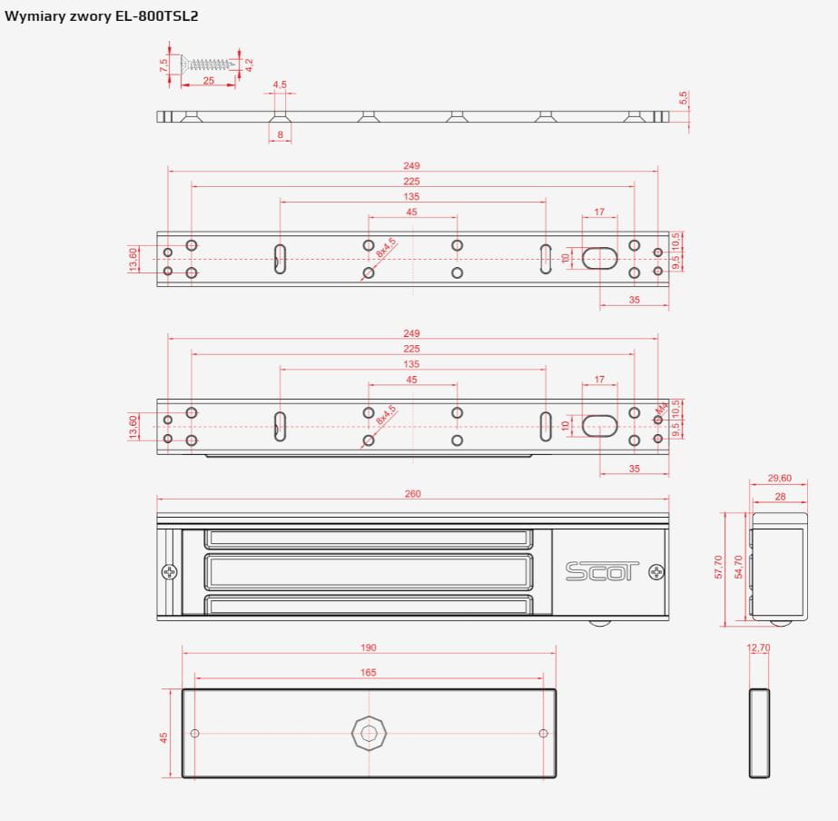 SCOT EL-800TSL2 ZWORA ELEKTROMAGNETYCZNA 350KG Z SYGNALIZACJĄ I ZWŁOKĄ CZASOWĄ